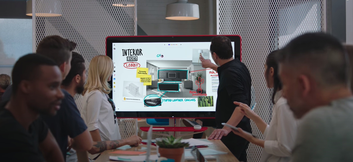 Google Jamboard is an interactive whiteboard that integrates real-time collaboration technology from G-Suite, known in Docs, Sheets, Slides, etc., into a freeform space that allows users to brainstorm and collaborate in early ideation. The ecosystem of products includes a 55” touch screen device, a mobile app for tablets and phones, and a version for the web.